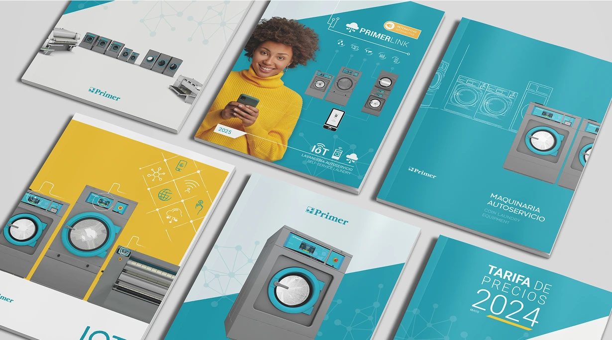 Desarrollar una arquitectura gráfica que dotara de identidad propia a cada una de las marcas del grupo dedicadas a soluciones de lavandería industrial. Aplicada a catálogos y otros soportes, debía ofrecer una imagen distintiva que, además de reforzar su posicionamiento y proyección internacional, facilitara la labor comercial, mostrando de manera visual y coherente los puntos fuertes y el valor de cada marca.
